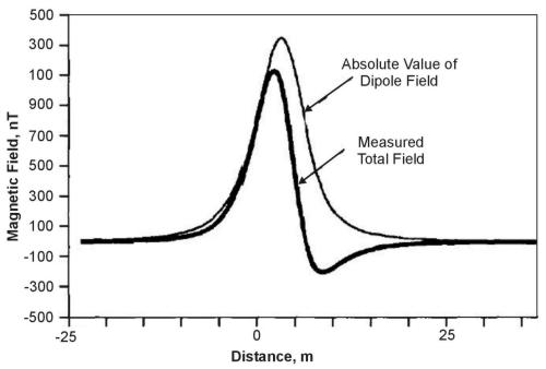 Additionally, the induced nature of the measured field makes even large bodies act as dipoles, that is, like a large bar magnet. If the (usual) dipolar nature of the anomalous field is combined with the measurement system that measures only the component in the direction of the Earth's field, the confusing nature of most magnetic interpretations can be appreciated.