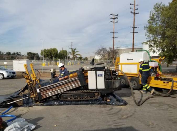 HDD rigs pump drilling fluid down the borehole while drilling to maintain borehole stability, remove cuttings, cool the drillhead and bit, and lubricate the well materials to be installed. Bentonite clay-based drilling fluid is often used in general HDD applications, but several manufacturers have developed drilling fluids, such as biopolymers, specifically for HRWs. There is a higher potential for borehole collapse in HRWs than vertical wells. Drillers with extensive HDD experience will be able to most effectively select and use drilling fluids based on site-specific conditions and needs. For instance, a soil vapor extraction well might require a drilling fluid that degrades quickly, such as a biopolymer, to expedite testing and use.