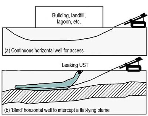 Prior to drilling vertical or horizontal remediation wells (HRWs), the site must be adequately characterized to determine suitable well placement with respect to contamination, groundwater flow, geologic features, receptors, etc. However, design and construction of HRWs is typically more complex. HRW design is highly variable due to factors such as design flow rate, length of the screen, total depth, total well length, soil type(s), and the type of remedy. In addition, the borehole path must be mapped out based on contaminant plume location, treatment objective, site geology, accessibility for drilling equipment, and the allowable radius of curvature of the drill pipe and well materials.
