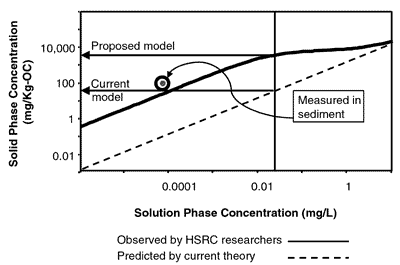 The adequacy of capping-material applications was determined by collecting bathymetric survey data at 297 points along 13 cross-river transects. Post-capping survey data were compared to pre-capping data to determine net elevational increases (estimated cap thickness) across the project area. Survey results indicated that good spatial coverage was achieved and that constructed cap thicknesses generally fall within respective targeted ranges for the three different cap designs. River-bottom core samples are being collected and evaluated to more directly document constructed cap thicknesses across selected portions of the demonstration area. A baseline study of benthic invertebrate organisms in the demonstration area was conducted during the summer of 1999. A follow-up study will be conducted during the summer of 2000 to determine if organisms have colonized the encapsulated areas. Since benthic organisms typically colonize only the upper few inches of sediment, they should remain isolated from contaminated sediments. The composite particle system was originally developed in 1994 at the Fort Richardson Superfund site in Alaska to address waterfowl mortality from contact with white phosphorus-contaminated wetland sediments. After a multi-year testing and observation period, the use of AquaBlok was incorporated into the Fort Richardson Record of Decision to cap contaminated sediments in difficult-to-reach marsh areas that cannot be addressed by other technologies. Technical assistance and input at the inception of the Ottawa River project was provided by the Ohio EPA, U.S. EPA, and U.S. Fish & Wildlife Service. The project was funded in large part through a grant from the Ohio Lake Erie Protection Fund. Darin Lockert (Ohio Lake Erie Commission) may be contacted at 419-245-2778 for additional information on the Fund. For further information, contact Casey Stephens (City of Toledo/Environmental Department) at 419-936-3757 or casey.stephens@ci.toledo.oh.us, or John Hull (Hull & Associates, Inc.) at 419-385-2018 or jhull@hullinc.com. Studies Conducted to Determine Biological Uptake from Contaminated Sedimentsby Joseph Hughes, Ph.D., and Mason Tomson, Ph.D., Rice University/Department of Environmental Science & Engineering Researchers at Rice University, Louisiana State University, and Southern University at Baton Rouge are studying the physical, chemical, and biological mechanisms governing contaminant release and biological uptake from contaminated sediments. Laboratory studies on sediments from Dickinson Bayou in Galveston County, TX, confirmed that desorption-resistant contaminant is available to degrading microorganisms. Similar studies have been conducted by these researchers on sediments from Bayou Manchac, LA, Utica Harbor, NY, and Lake Charles, LA. Most significantly, results indicate that the presence of an inducing substrate may enhance rates of mineralization of sorbed contaminants, whereby endpoints of degradation are similar regardless of initial contaminant concentration. Researchers anticipate that these findings may help to set soil or sediment quality limits for regulatory purposes or to establish endpoints (no-action levels) for remediation purposes. Findings suggest that sediments and soils presently requiring treatment could be left untreated without increasing the risk to human health or local ecosystems (Figure 2). In addition, modified clean-up levels (such as allowing 10 percent of the contamination at a site to be left in place) could reduce remediation costs by 50-75 percent and save several years in remediation time.