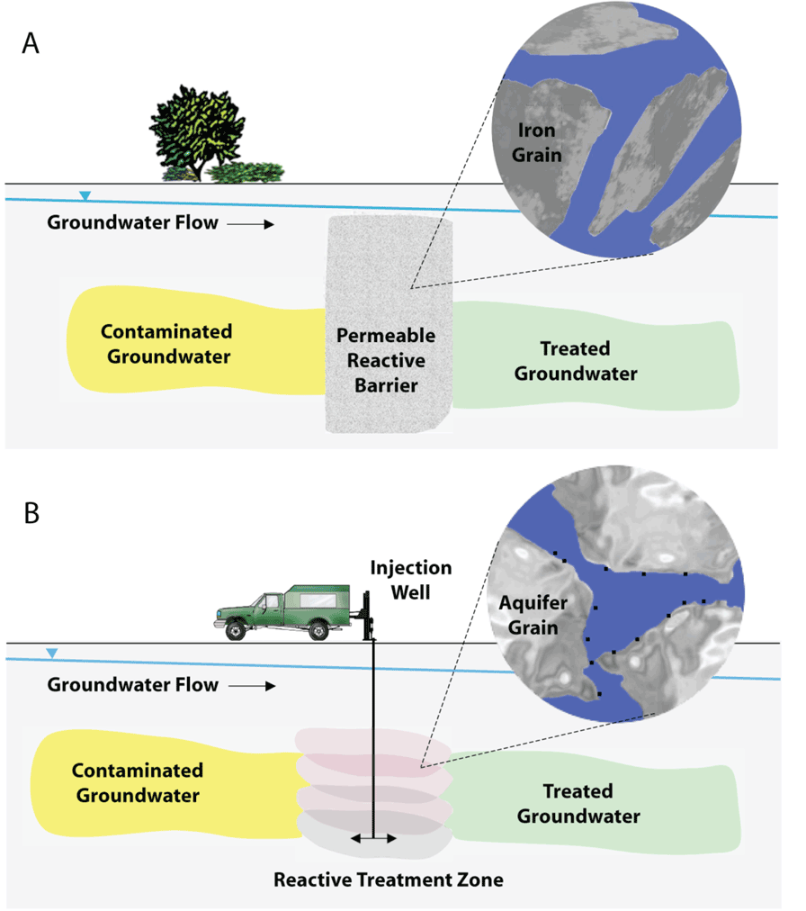 Figure 4. Schematic of two methods of groundwater remediation using nanoscale iron (CGR 2009)